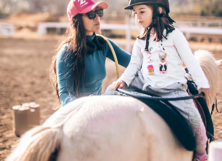 Clases divertidas de 30 minutos diseñadas para fomentar el aprendizaje y la interacción con ponis, para niños de hasta 7 años.